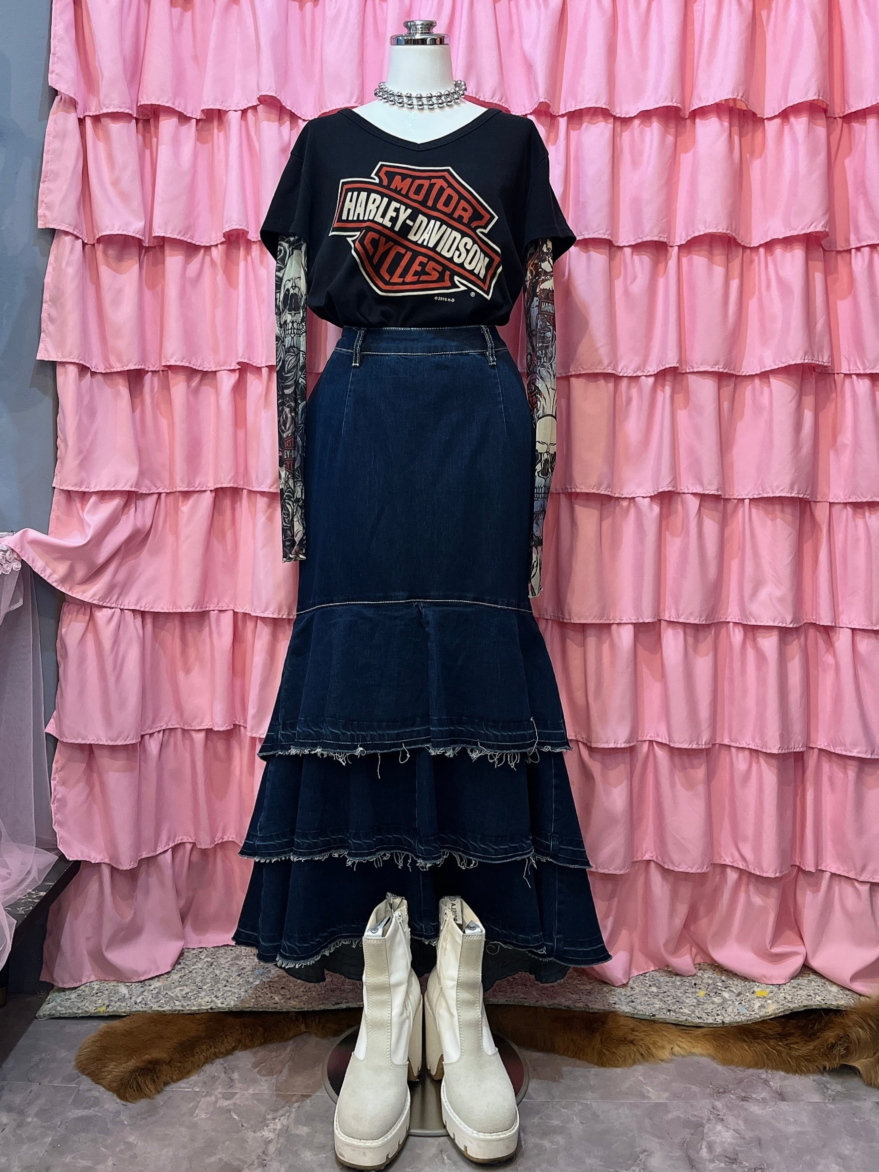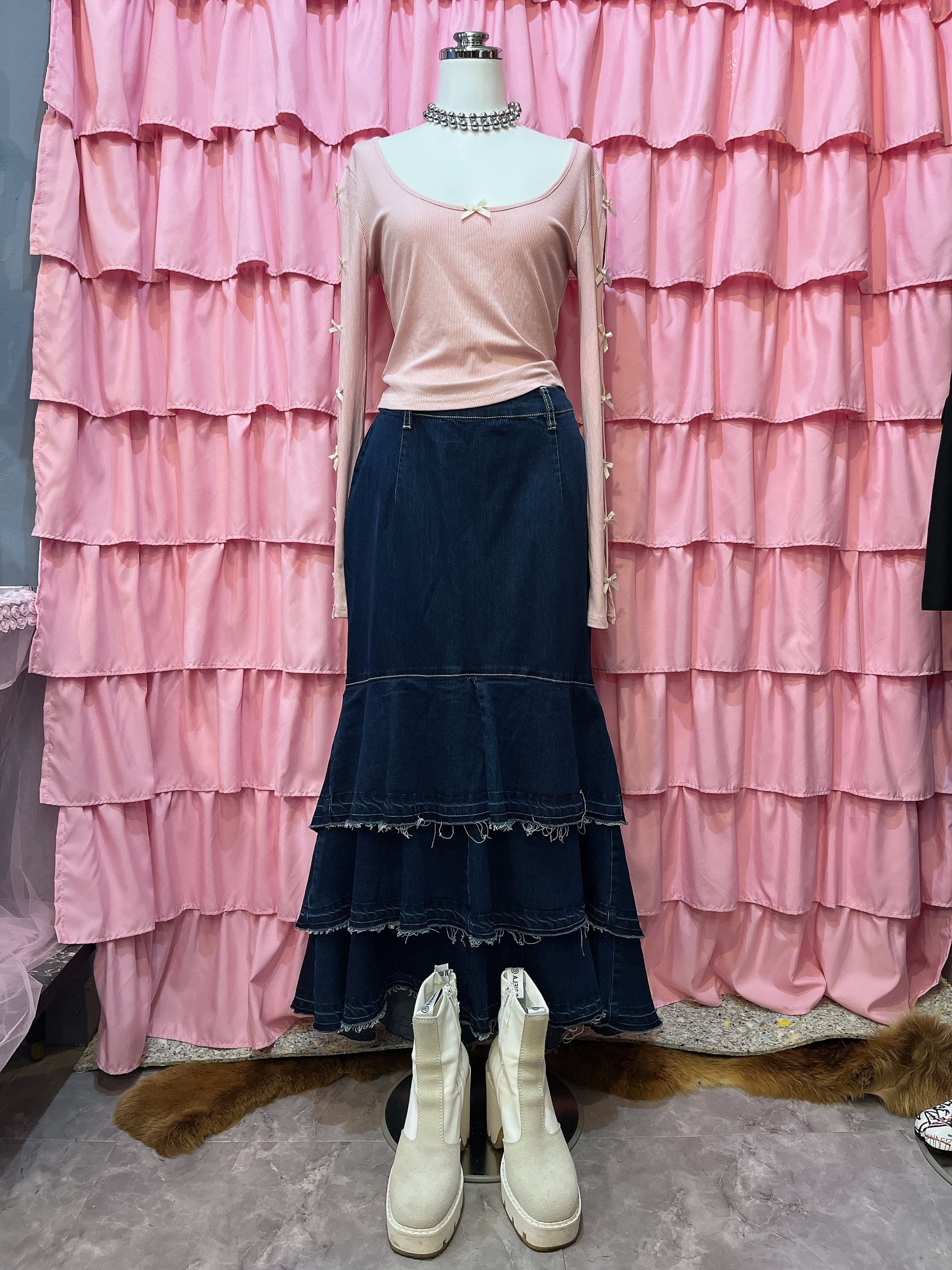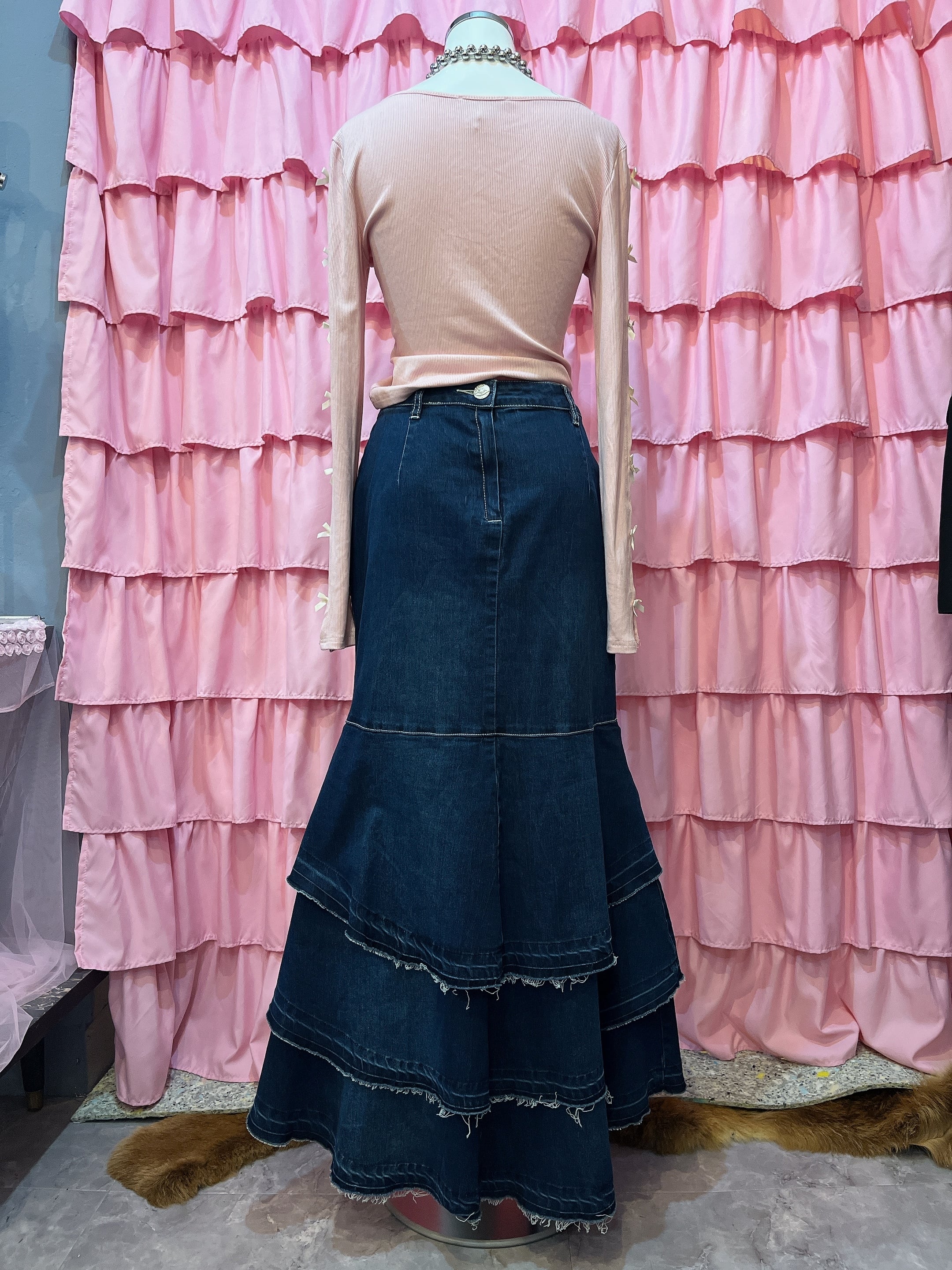 denim tiered maxi skirt